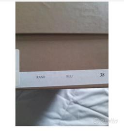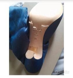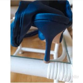 Un bellissimo blu in raso, allaccio alla caviglia, suola vero cuoio.