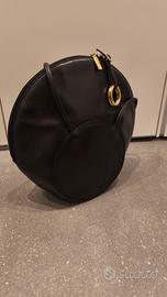 Modello rotondo in pelle nera liscia, design