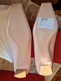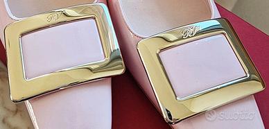 Décolleté di Roger Vivier in rosa pallido con la maxi fibbia dorata.