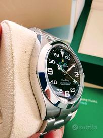 Rolex Air king ultima referenza 126900 full sett. Orologio acquistato da me personalmente nel 2024 da rivenditore ufficiale Rolex ,in garanzia Rolex fino al 2029,unicoproprietario . Presente anche lo scontrino d'acquisto. Spedizione tracciata e Assicurata per l'intero importo , In condizioni perfette ,Eventualmente visionabile esclusivamente presso mio orologiaio di fiducia . Pagamento solo con bonifico istantaneo .