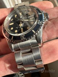 Quadrante con una bellissima patina e ghiera leggermente virata al blu.
