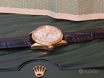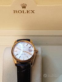 Rolex Datejust in oro 18 KT. quadrante bianco 31 mm ref. 6827unisex cinturino in pelle con fibia in oro non originale completo di scatola e garanzia. N.B. ACCETTO PAGAMENTO SOLO CON BONIFICO