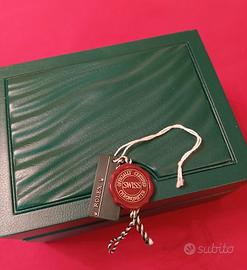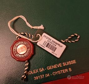 Si propone alla vendita, questa Scatola Rolex originale ref. 39137.04 Oyster S , periodo 2010 - 2012 , inseme al tag verde seriale G e al cosc ceralacca. Sono tutti oggetti originali e di mia proprietà e leciti. Possibile spedire