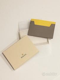 2) Porta carte di credito originale Rolex in pelle saffiano color tortora e giallo, nuova, completa di confezione originale.