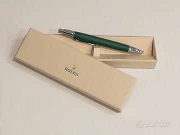 3) Penna a sfera originale Rolex color verde bottiglia, con logo Rolex impresso, nuova, completa di confezione originale.