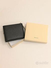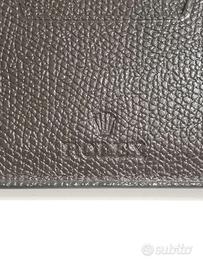 5) Portafoglio originale Rolex in pelle martellata color testa di moro, nuovo, completo di confezione originale.