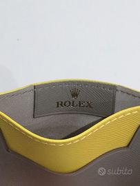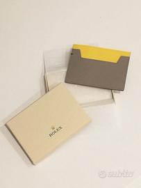 4) Porta carte di credito originale Rolex in pelle saffiano color tortora e giallo, nuova, completa di confezione originale.