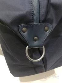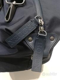 2) Borsone da week-end originale Rolex, in tela e rifiniture in pelle blu, con tracolla, logo Rolex a stampa sulla parte frontale, fodera nera e tasca interna, nuovo.
