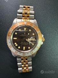 Rolex Oyster perpetual n° 16753 catalogo GMT Master acciaio oro bracciale jubilè cronometre poco usato unico proprietario funzionante in perfette condizioni automatico certificato di garanzia originale scatola originale 3392647058 cell. Qualità Rarità Bellezza Serietà " no "speculatori no affaristi no Africani