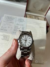 Vendo Rolex Air King 14000 seriale T anno 1997 in ottime condizioni,acquistato da Della Rocca 07/21 con sua garanzia,revisione e certificazione CHS.No garanzia Rolex,accetto permute con Tudor Black Bay.Max serieta’