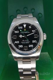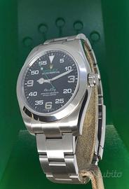 Rolex Air King 40 mm vetro zaffiro quadrante Nero 3 6 9 lancetta verde .