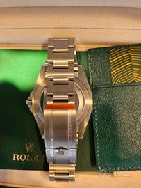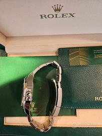 ROLEX AIR KING 126900 MAI INDOSSATO CON PLASTICHE, ULTIMA REFERENZA IN GARANZIA, SOLO TENUTO IN CASSETTA DI SICUREZZA . N.B. CON CORDONCINO E BOLLINO ROLEX NON IN FOTO MA PRESENTE e POCHETTE VIAGGIO ROLEX. OROLOGIO NON MAINSTREAM MA ANCHE CON UN CINTURINO DI ALLIGATORE VERDE O GIALLO I COLORI CHE SONO NEL QUADRANTE FA' LA DIFFERENZA RISPETTO AGLI ALTRI ROLEX CHE HANNO TUTTI CHE PORTANO TUTTI TUTTI E POI..........N.B. ANCHE SU ALTRI PORTALI...... STORIA: Nel 2016 l’Air‑King è stato interamente ridisegnato. Mentre il quadrante nero con la scala dei minuti in primo piano richiama certi orologi storici pensati per l’aviazione e rafforza il legame del modello con il mondo dell’aeronautica, il caratteristico trio di lancette e le spallette di protezione della corona (queste ultime dal 2022) lo ancorano al mondo degli orologi Professionali. Un’altra caratteristica speciale è il colore verde della lancetta dei secondi, identico a quello del nome Rolex. Ciò è ottenuto mediante la tampografia, una tecnica usata anche per l’iconica corona a cinque punte del Marchio, che sull’Air‑King sfoggia il colore giallo (un’eccezione nella collezione Oyster Perpetual). Questi elementi conferiscono all’orologio il suo stile immediatamente riconoscibile e la sua personalità unica. VENDO CON GRANDE DISPIACERE MA SOLO PERCHE' HO TANTI OROLOGI E DEVO PRENDERE IL ROLEX EPLORER II PER MIO FIGLIO CHE SI LAUREA TRA POCHI MESI ECT...ECT...ALTRIMENTI INVENDIBILE, ANCHE PERCHE' L'HO PAGATO DI PIU' CHE PRENDONO I PORTALI DI VENDITA ABBASTANZA DI PIU'. N.B. ALTRE FOTO IN ARRIVO.......GRAZIE. M.C.