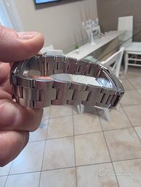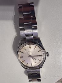 Rolex Air king vintage ref.5500 del 1988 cal. 1520 automatico 36mm vetro plaxi, appena revisionato in tutte le sue parti, cambio di tutte le guarnizioni compreso molla di carica, bracciale coevo con tutte le sue maglie, quadrante originale virato, come pure gli indici, completo della scatola, rilascio lecita provenienza, valuto scambiocon scooter o vespa 125cc, il prezzo non è trattabile.
