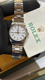 Negozio RC Orologi, situato in Via A. Poerio 22 a Mestre (Venezia), vende Rolex Airking acciaio 34mm ref. 14000M. Anno 2001. Quadrante bianco. Scatola e garanzia. Revisione 2026. Condizioni top. Stupendo. Valuto permute con controllo in negozio, principalmente con Rolex recenti, nuovi o revisionati negli ultimi 24 mesi con documento, completi full set, solo in eccellenti condizioni. Contatto diretto Whatsapp Pagamento solo bonifico bancario, bancomat, carta di credito o contanti nei limiti di legge ( NO “tutto contanti”, no rate, no finanziamenti, no dilazioni, NO TAX FREE ).