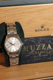 Vendo Rolex airking ref 5500 in buone condizioni, perfettamente funzionante Cassa Oyster in acciaio; lunetta zigrinata in acciaio, bracciale Oyster in acciaio con maglie a ribattini, vetro in plastica, quadrante argento. Movimento meccanico a carica automatica. Dimensioni cassa 34mm, con scatola originale Garanzia del rivenditore ancora valida. No perditempo grazie Poco trattabile.