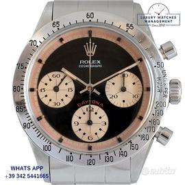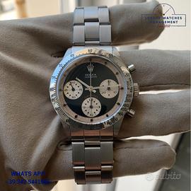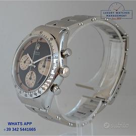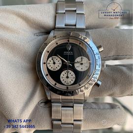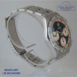 Rolex Cosmograph 6262 Daytona MK2 acciaio, anno di produzione 1970, ghiera MK2 acciaio scala graduata 200, vetro plastica bombato, quadrante Paul Newman fondo colore nero con grafica a tre colori originale Rolex dell’epoca, movimento meccanico carica manuale, bracciale Oyster acciaio a maglie ripiegate e rivetti con deployante Rolex.