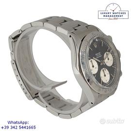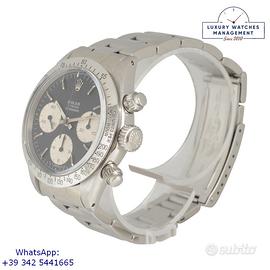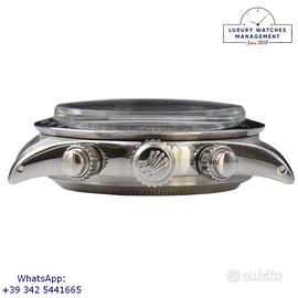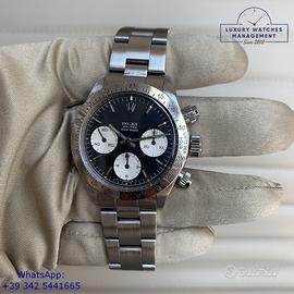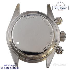 Orologio originale Rolex in ogni sua parte, molto raro della Forza Aerea del Perù con numero inciso di assegnazione al pilota sul fondello, quadrante sigma fine serie molto raro senza scritta Daytona, revisionato in ottime condizioni, segni di usura assenti o appena visibili, scatola originale Rolex dell'epoca, perizia tecnica di autenticità “myWatch expertise” by KeepTime Lab, garanzia/dichiarazione di vendita nostro negozio valida 12 mesi.