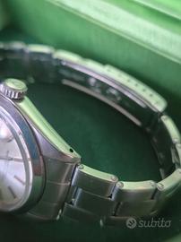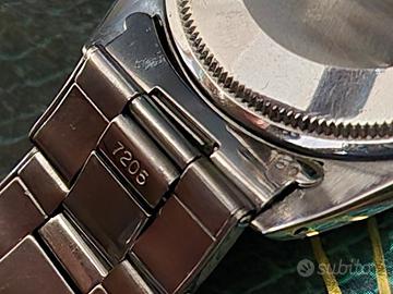 Rolex Date Referenza 1500 anno 1971/72 ben conservato e coevo . Caratteristiche tecniche : Raro bracciale ref 7205 rivettato finali 60 clasp 1 72 seriale cassa 2.7xx.xxx calibro 1570 vetro plastica Quadrante argento , T swiss T Scatola originale , revisione 2026. 3200€ non trattabili .