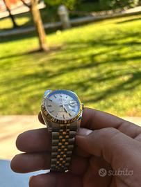 In Vendita: Rolex Datejust 116233 – Anno 2006 – Condizioni Perfette! Se desideri un orologio che combina eleganza e prestazioni, non cercare oltre! Ti presento il Rolex Datejust 116233, un classico senza tempo, ideale per ogni occasione. 🔹 Dettagli del Prodotto: •Modello: Rolex Datejust 116233 •Anno: 2006 •Corredo Completo: Scatola originale, controscatola, certificato e documentazione •Condizioni: Perfette, come nuovo, senza graffi o segni d’usura 🔹 Caratteristiche: •Cassa: 36 mm in oro giallo e acciaio inox •Quadrante: Champagne con indici a bastone •Bracciale: Jubilee in oro e acciaio, elegante e confortevole •Movimento: Automatico, calibro Rolex 3135 Questo orologio è un simbolo di prestigio e raffinatezza, perfetto per collezionisti e appassionati. Con il suo design senza tempo, il Rolex Datejust è adatto sia per eventi formali che per l’uso quotidiano. 💰 Prezzo: €8.500 (trattabili solo se veramente interessati) Contattami per ulteriori informazioni o per organizzare un incontro. Non perdere l’opportunità di possedere un pezzo iconico di orologeria!