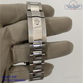 Orologio Rolex originale in ogni sua parte, mai indossato, nuovo e senza segni di usura, full set (scatola, accessori vari, garanzia card ufficiale Rolex valida per 5 anni), garanzia/dichiarazione di vendita nostro negozio valida per 12 mesi.