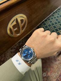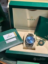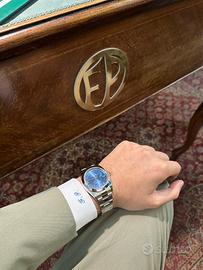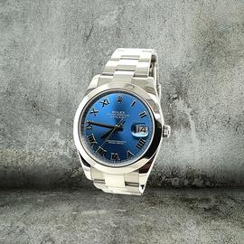 Vi proponiamo questo affascinante Datejust con cassa da 41mm in condizioni pari al nuovo. Il quadrante Blue Azzurro con numeri romani si presta per ogni occasione.