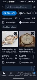 vendo o permuto Rolex datejust anno 1973 coevo molto raro acc oro rosa 18kt bracciale maglie ripiegate primo prezzo nel web 6100€ valuto permute coerenti con orologi di brand importanti moderni tipo omega Rolex cartier breitling Tudor panerai zenith vacheron Longines ecc tutti gli orologi in vendita vengono verificati presso il mio orologiaio con chrono comparatore in tutte le vedite/permute viene rilasciato atto di vendita con lecita provenienza e documenti allegati foto , seriali ,n identificativi ecc le foto nell annuncio sono sempre in primo piano e non nascondono mai ne difetti ne pregi . ( è possibile fissare un appuntamento presso uno dei miei orologiai " salice terme PV" oppure "moirago MI " per le vendite con spedizione ( Prendo in considerazione pagamento con bonifico bancario , paypal amici ) LA SPEDIZIONE VIENE SEMPRE EFFETTUATA ENTRO 24 ORE DALL ACCREDITO TOTALE . sono un appassionato che amo cambiare e scambiare molti orologi Do Massima disponibilità e serietà e desidero essere contattato solo da persone con i medesimi principi! no trattative e lungaggini infinite ( vi prego) per gli Scambi valuto Rolex breitling Tudor vacheron omega zenith panerai Cartier ecc)primo messaggio con foto referenza e conguaglio dare avere almeno si fa prima. ringrazio chi ha avuto la pazienza di leggere fino a qui