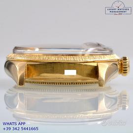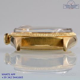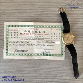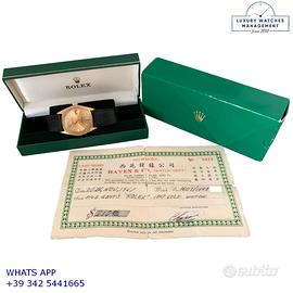 Orologio originale Rolex in ogni sua parte, revisionato in buone condizioni, segni di usura o graffi poco visibili o visibili, full set (scatola service e garanzia originale Rolex dell’epoca), garanzia/dichiarazione di vendita del nostro negozio valida 12 mesi.