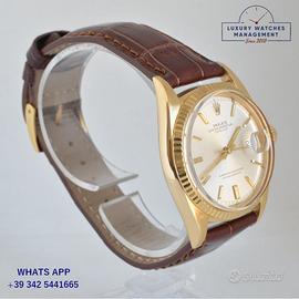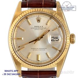 Per conoscere il prezzo e le caratteristiche tecniche dei nostri orologi visita il nostro sito ufficiale: https://lwmitalia.com/it Tutti i nostri orologi vengono verificati e revisionati dal nostro laboratorio specializzato “KeepTime Lab”: https://keeptimelab.com/it/ Rolex Datejust 1607 oro giallo 18KT, anno produzione 1969, ghiera scanalata in oro giallo 18KT, vetro plastica con lente ciclope, quadrante soleil colore argento originale Rolex dell’epoca mai ritoccato o ristampato, movimento meccanico a carica automatica, cinturino alligatore lucido colore marrone con fibbia dorata originale Rolex. Orologio originale Rolex in ogni sua parte, revisionato in ottime condizioni, segni di usura assenti o appena visibili, scatola originale Rolex dell’epoca, garanzia/dichiarazione di vendita nostro negozio valida 12 mesi.