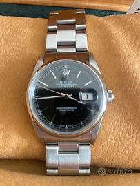 Orologio Rolex Darejust referenza 16200 full set con quadrante nero. 36mm bracciale oyster. Orologio tenuto in ottime condizioni. Corredato di scatola e garanzia Anno 2004. L’orologio non necessita di alcun intervento di manutenzione o ripristino. Orologio coevo in ogni sua parte. Valuto volentieri, anzi preferisco permute con Rolex, Omega, Cartier. No Vespe, pietre preziose, quadri ecc. Evitare offerte al ribasso.