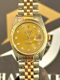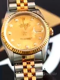 Rolex datejust ref 16233 Cassa 36mm Anno 2003 cassa senza fori quadrante con grandi diamanti orologio si trova nelle condizioni spettacolari Tiene benissimo il tempo spacca i secondi Orologio non è stato lucidato ( no scatola no documenti ) rilascio lecita provenienza Orologio originale Valuto scambi con alti orologi di pari valore Rolex , vacheron, jaeger le coultre , Patek ,ecc