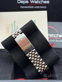 La cassa da 36 mm in acciaio Oystersteel, abbinata alla lunetta zigrinata in oro bianco, rappresenta il perfetto equilibrio tra sportività e raffinatezza. Completa il tutto il bracciale Jubilee, simbolo per eccellenza del Datejust, comodo e raffinato al polso.
