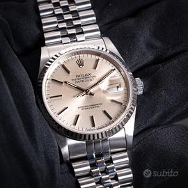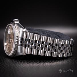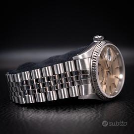 Intramontabile Rolex Datejust referenza 16234 con elegante quadrante champagne, una delle configurazioni più classiche e raffinate della collezione. La ghiera zigrinata in oro bianco esalta la luminosità del quadrante, mentre il bracciale Jubilee garantisce comfort e uno stile iconico al polso. Orologio versatile e sempre attuale, perfetto sia per l’uso quotidiano che per occasioni più formali. Movimento automatico preciso e affidabile, tipico della qualità Rolex. L’orologio viene venduto come “solo orologio”. Venduto con: •Nostra garanzia sul buon funzionamento •Nostro certificato di originalità •Regolare fattura di vendita