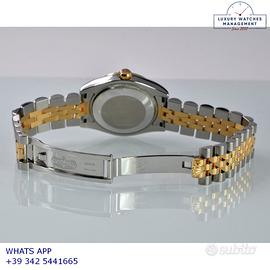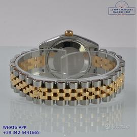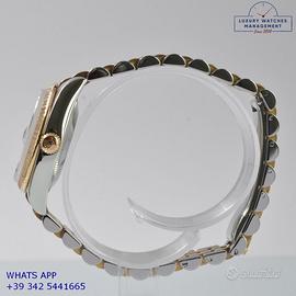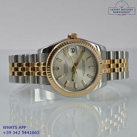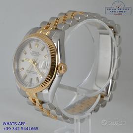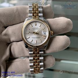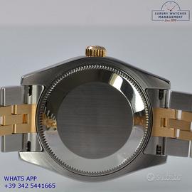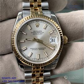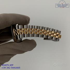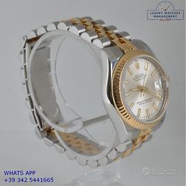 Rolex Datejust 31MM acciaio e oro giallo 18KT, anno di produzione 2006, ghiera oro giallo 18KT zigrinata, vetro zaffiro antiriflesso con lente ciclope, quadrante soleil colore argento con data, indici e sfere al LumiNova, movimento meccanico a carica automatica, bracciale Jubilee acciaio e oro giallo 18KT con chiusura deployante originale Rolex.