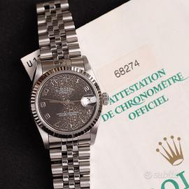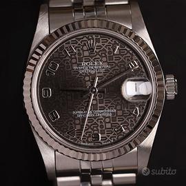 Negozio con sede fisica (nella Rep. di San Marino, si riceve solo su appuntamento) e sito internet vende: Rolex Datejust misura media da 31 mm Quadrante grigio con numeri arabi con motivo "computer" referenza 68274 Seriale U1**** Anno 1998, corredato di scatola e garanzia Rolex Ottime condizioni Orologio assolutamente originale e ben mantenuto. Tutti i nostri orologi vengono consegnati con nostra garanzia 12 mesi. Per visionare altri orologi cercare il nostro sito: raimondi orologi. com IG: raimondi_orologi Per eventuale spedizione si gradisce un contatto diretto, possibilità di consegna di persona previo accordi.