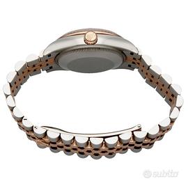 Proponiamo in vendita un elegante Rolex Datejust 31 referenza 278271, raffinata configurazione in acciaio e oro Everose con ricercato quadrante chocolate impreziosito da numeri romani e dal caratteristico numero VI incastonato con diamanti.