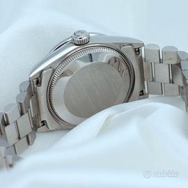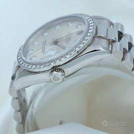Rolex Datejust in Platino, con lunetta e indici diamanti.
