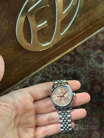 Segni particolari: BELLISSIMO. Questo Datejust da 31mm, vanta questa ricercatissima configurazione con quadrante rosa e indici in diamanti. Bracciale Super Jubilee con chiusura a scomparsa. Ottimo per farsi, o per fare un regalo.