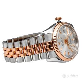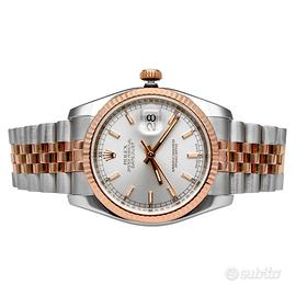 Elegante e raffinato, questo Rolex Datejust 36 Ref. 116231 unisce acciaio Oystersteel e oro rosa 18 kt (Everose) in una delle combinazioni più classiche e richieste della collezione.