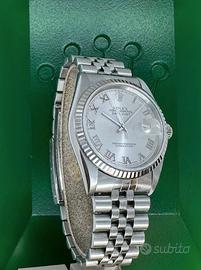 Rolex Datejust 36 mm vetro zaffiro quadrante Argentè Romani con data .
