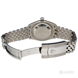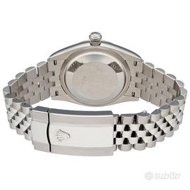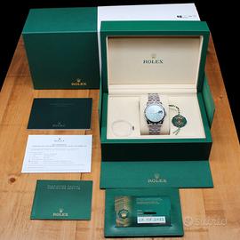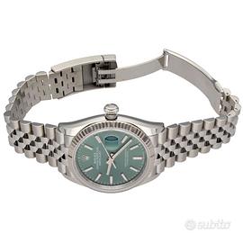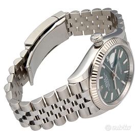 Rolex Datejust 36 Ref. 126234 Quadrante Verde NOS 07/2025 Full Set Elegante Rolex Datejust 36 in configurazione classica e moderna, con raffinato quadrante verde abbinato alla ghiera in oro bianco e bracciale Jubilee. Esemplare NOS, mai indossato, in condizioni pari al nuovo. Dati tecnici: Marca: Rolex Modello: Datejust 36 Referenza: 126234 Anno: 07/2025 Movimento: Automatico Cassa: Acciaio Diametro: 36 mm Quadrante: Verde Vetro: Zaffiro Bracciale/Cinturino: Jubilee in acciaio Chiusura: Deployante Rolex Impermeabilità: 100 metri Funzioni: Ore Minuti Secondi Data Condizioni: Orologio NOS, pari al nuovo Mai indossato Corredo: Corredo come da foto Nostra garanzia 24 mesi L'orologio è originale e di lecita provenienza. Per visionare l'orologio di persona è necessario prendere un’ appuntamento in negozio. L'orologio viene venduto comprensivo di garanzia del nostro negozio, valida 24 mesi e garantisce il buon funzionamento, l’originalità e la lecita provenienza. Le foto pubblicate sono realmente dell’orologio in vendita. Permutiamo e acquistiamo il vostro orologio usato delle migliori maison svizzere. Spediamo solo in Europa, con corriere assicurato di nostra fiducia.