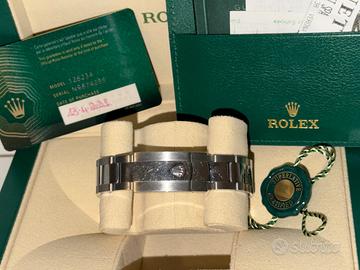 Rolex datejust 36mm quadrante viola con numeri romani, 6 e 9 diamantati, unico proprietario, anno 2021, full set, mai lucidato. Referenza 126234