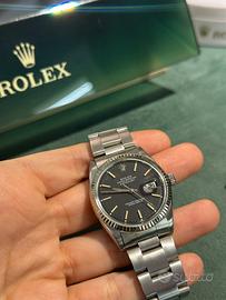 Stupendo Rolex Datejust Black dial Opaco ref 1603, con ghiera in Oro 18kt Originale Rolex, sostituita dal precedente proprierario, indici al trizio virati magnificamente