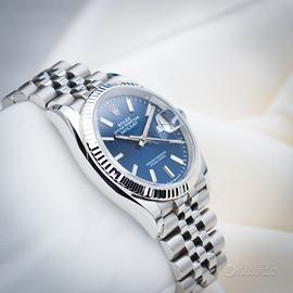 Ciao a tutti, Vendo Rolex Datejust 36mm Ref. 126234 Blu Jubilee, usato, full set, 2021. Non credo abbia bisogno di particolari presentazioni, questo Rolex è un gran classico, perfetto per chi vuole indossare un orologio elegante e sportivo allo stesso tempo. Viene venduto full set (fate riferimento alle foto per maggiore accuratezza). è composto da box interno ed esterno, manuali, garanzia, tag verde. Orologio non lucidato, ha delle hairlines che ho cercato di enfatizzare nelle foto, nessun graffio evidente. Per chi volesse, includo la lucidatura nel prezzo. Prezzo richiesto: €10.500 oltre spedizione (o consegna a mano a Milano). Valuto volentieri scambi con orologi recenti dei principali brand! Resto a disposizione per qualsiasi informazione. Francesco