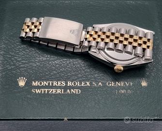 Rolex Datejust 36 riferimento 16013 con movimento automatico, cassa in acciaio e oro 18 kt e quadrante dorato, diametro 36 mm, bracciale jubilee in oro e acciaio,scatola inclusa, anno 1987 ìn buone condizioni vendo per inutilizzo al prezzo di euro 3000 no permute, non trattabile e non scambio spedizione assicurata in tutta italia a carico di chi acquista.
