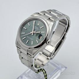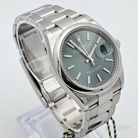 NON SI FANNO PERMUTE DI NESSUN GENERE E NO OFFERTE RIDICOLE! – OROLOGIO: Rolex datejust 36 mm ref. 126200 anno 2023. – MOVIMENTO: Meccanico carica automatica, data, ore, minuti, secondi - QUADRANTE: Verde Mint. – CASSA: In acciaio, vetro minerale, cassa diametro 36mm. – BRACCIALE : Acciaio Oyster Rolex – CONDIZIONI: Usato. – CORREDO: Scatola e garanzia originali Rolex. Si dichiara che l’orologio posto in vendita è revisionato, è completamente originale ed è esattamente quello visualizzato in queste immagini. Spedizione assicurata o ritiro in negozio. E’ possibile effettuare il pagamento con Bonifico Bancario, o con carta di credito direttamente in negozio. L’orologio viene venduto con regolare scontrino fiscale o fattura, completo di nostra dichiarazione di originalità e garanzia sul funzionamento per 12 mesi. E’ possibile esercitare diritto di recesso secondo i termini di legge. Laboratorio Orafo Barozzi Christian Piazza della Vittoria 6 25087 Salò (BS) Tel.393 5665095