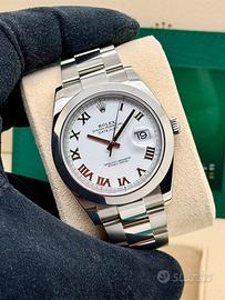 Negozio fisico di Roma vende Rolex Datejust 41mm acciaio Ref. 126300 Bracciale Oyster Quadrante bianco numeri romani Completo Full Set, scatola e garanzia rolex verde NFC 2023 ancora in garanzia casa madre Presente fattura d’acquisto Bucherer Swiss Condizioni eccellenti di pari al nuovo Prodotto originale € 8.500