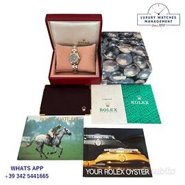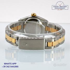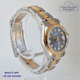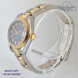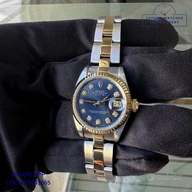 Per conoscere il prezzo e le caratteristiche tecniche dei nostri orologi visita il nostro sito ufficiale: https://lwmitalia.com/it Tutti i nostri orologi vengono verificati e revisionati dal nostro laboratorio specializzato “KeepTime Lab”: https://keeptimelab.com/it/ Rolex Datejust da donna da 26MM acciaio e oro giallo 18KT, anno di produzione 1985, ghiera zigrinata in oro giallo 18KT, vetro zaffiro antiriflesso con lente ciclope, quadrante soleil colore blue con data e indici taglio diamante Rolex, movimento meccanico a carica automatica, bracciale Oyster acciaio e oro giallo 18KT con chiusura deployante originale Rolex. Orologio originale Rolex in ogni sua parte, revisionato in ottime condizioni, segni di usura assenti o appena visibili, full set (scatola, accessori vari, garanzia traforata ufficiale Rolex), garanzia/dichiarazione di vendita del nostro negozio valida per 12 mesi.