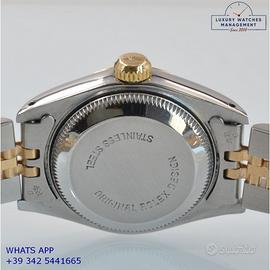 Orologio originale Rolex in ogni sua parte, già revisionato in ottime condizioni, segni di usura assenti o appena visibili, full set (scatola, accessori vari, garanzia traforata ufficiale Rolex), garanzia/dichiarazione di vendita del nostro negozio valida per 12 mesi.