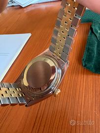Meraviglioso Datejust acciaio oro 36mm bracciale nubilee maglie piene(non ritorte)anno 1977 ref 1601 vetro plastica e scatto lento(anno di transizione dal passaggio al rapido)condizioni maniacali…sempre tenuto in cassetta…scatola e porta orologio in alcantara aftermarket…orologio con certificato di autenticità e lecita provenienza…quadrante crema a dir poco perfetto…orologio 10/10 prezzo intrattabile per qualsiasi info non esitate a contattarmi…no sognatori vendi per inutilizzo e non per bisogno