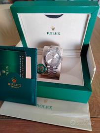 Rolex Datejust 41 con referenza 126334, caratterizzato da cassa in acciaio, lunetta zigrinata in oro bianco e quadrante silver.